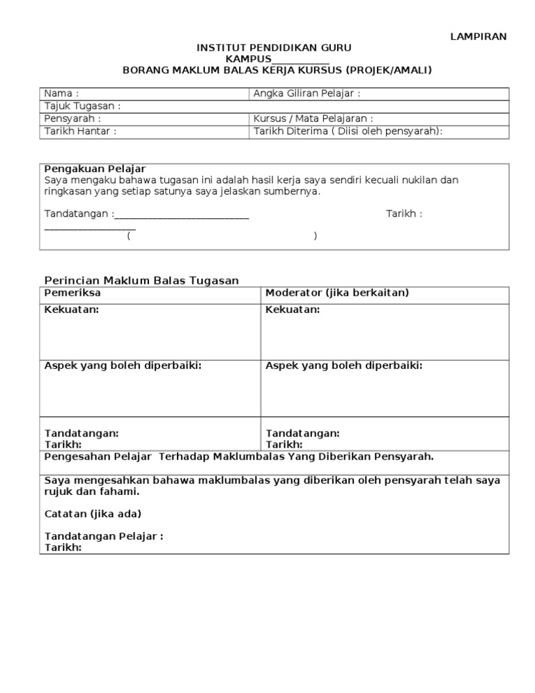 Ipg kampus sultan abdul halim borang maklum balas kerja kursus (projek / amali.