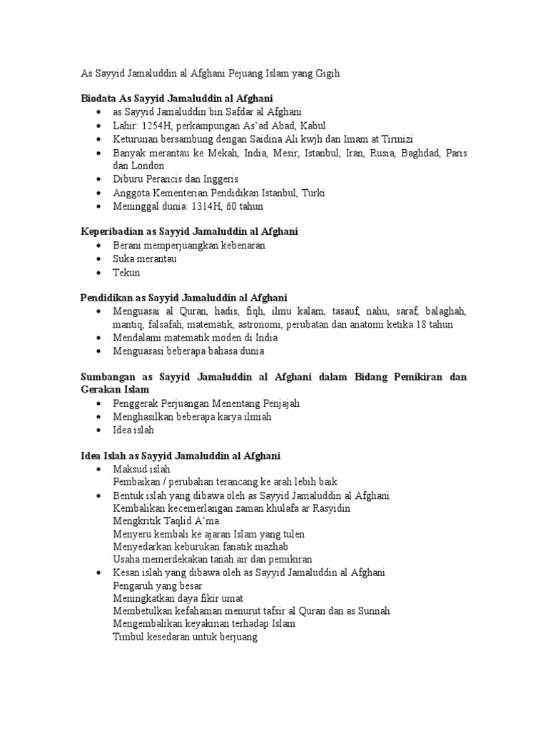 He was apparently much influenced by the shaikhist school. Sirah amp tamadun islam tingkatan 5 as sayyid jamaluddin al afghani. Menguasai beberapa bahasa dunia seperti bahasa afghanistan ( fishto ), parsi, arab, turki, urdu, perancis, inggeris, dan rusia. In afghanistan ist eine universität in kabul nach ihm benannt ( syed jamaluddin afghan university ). Di lahirkan di asad abad, kabul, afghanistan pada tahun 1254 hijrah / 1838 masihi.